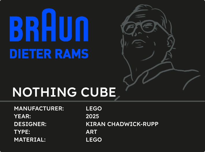 With an architect as a father and as a design student myself, I’ve always been drawn to the work of Dieter Rams. His 10 principles have shaped the way I think about form, function, and the role design plays in everyday life. For this project, I wanted to merge that philosophy with my passion for LEGO, creating something that celebrates both timeless design and the joy of building.