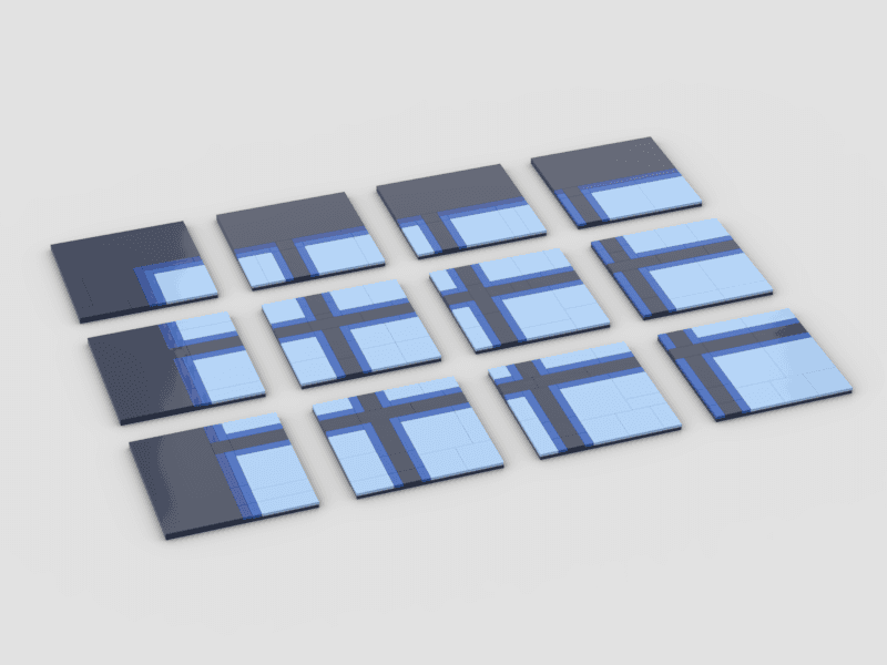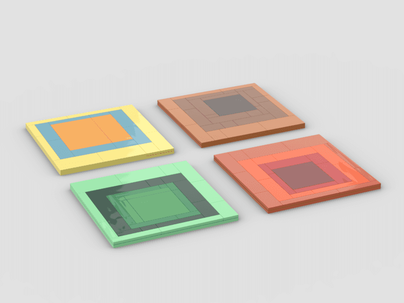 When I was visiting an art gallery in San Francisco, I saw work by Josef Albers and Agnes Martin. Their use of shape, space, and colour was simple but powerful, and I immediately thought about how well it could translate into LEGO form. I liked the idea of using the natural grid of LEGO as part of the design instead of hiding it.