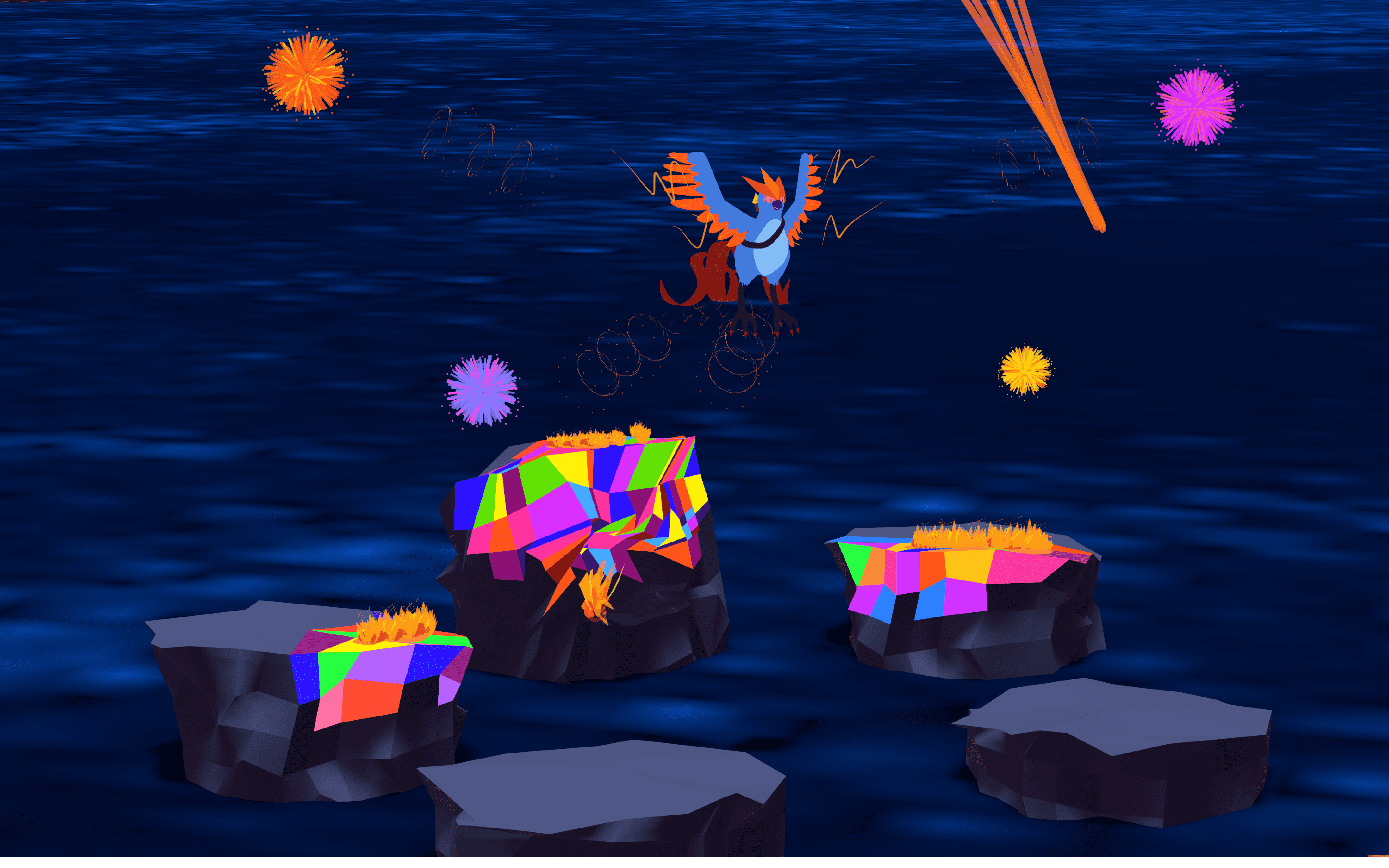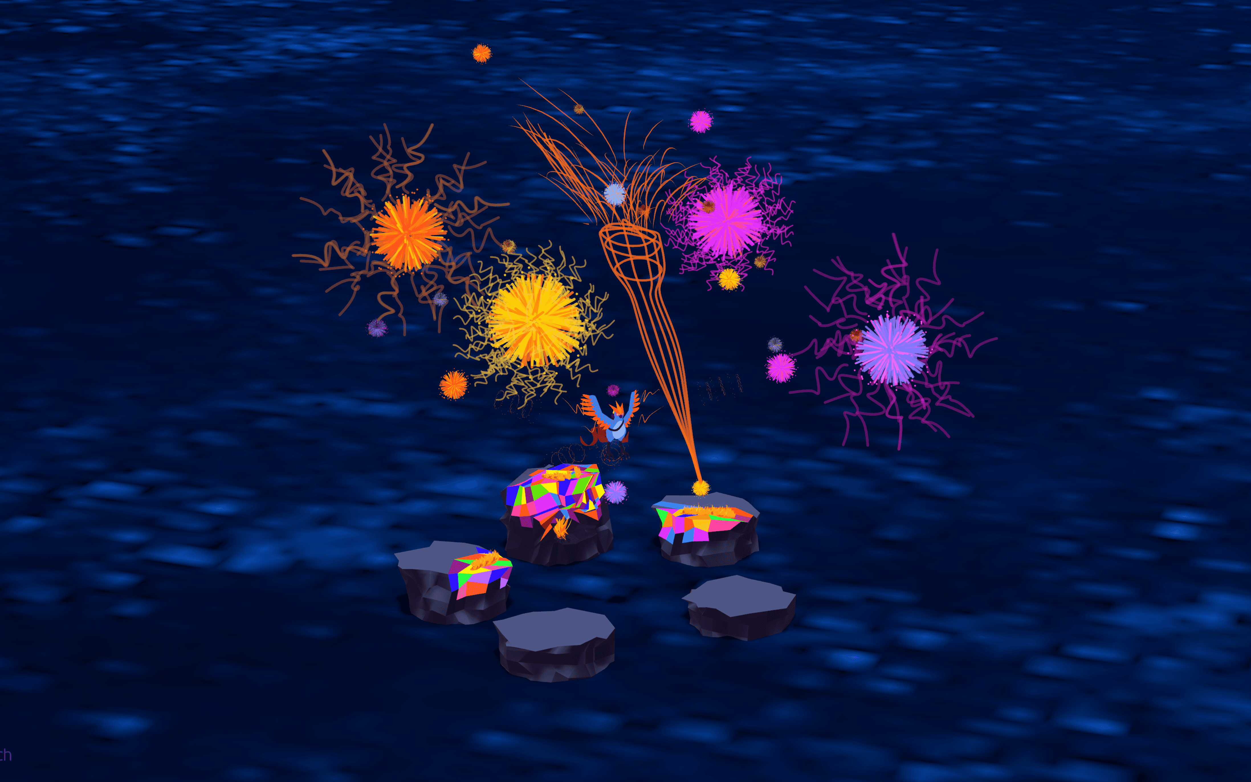 Pyrotecuno reimagines Articuno as a pyrotechnician.