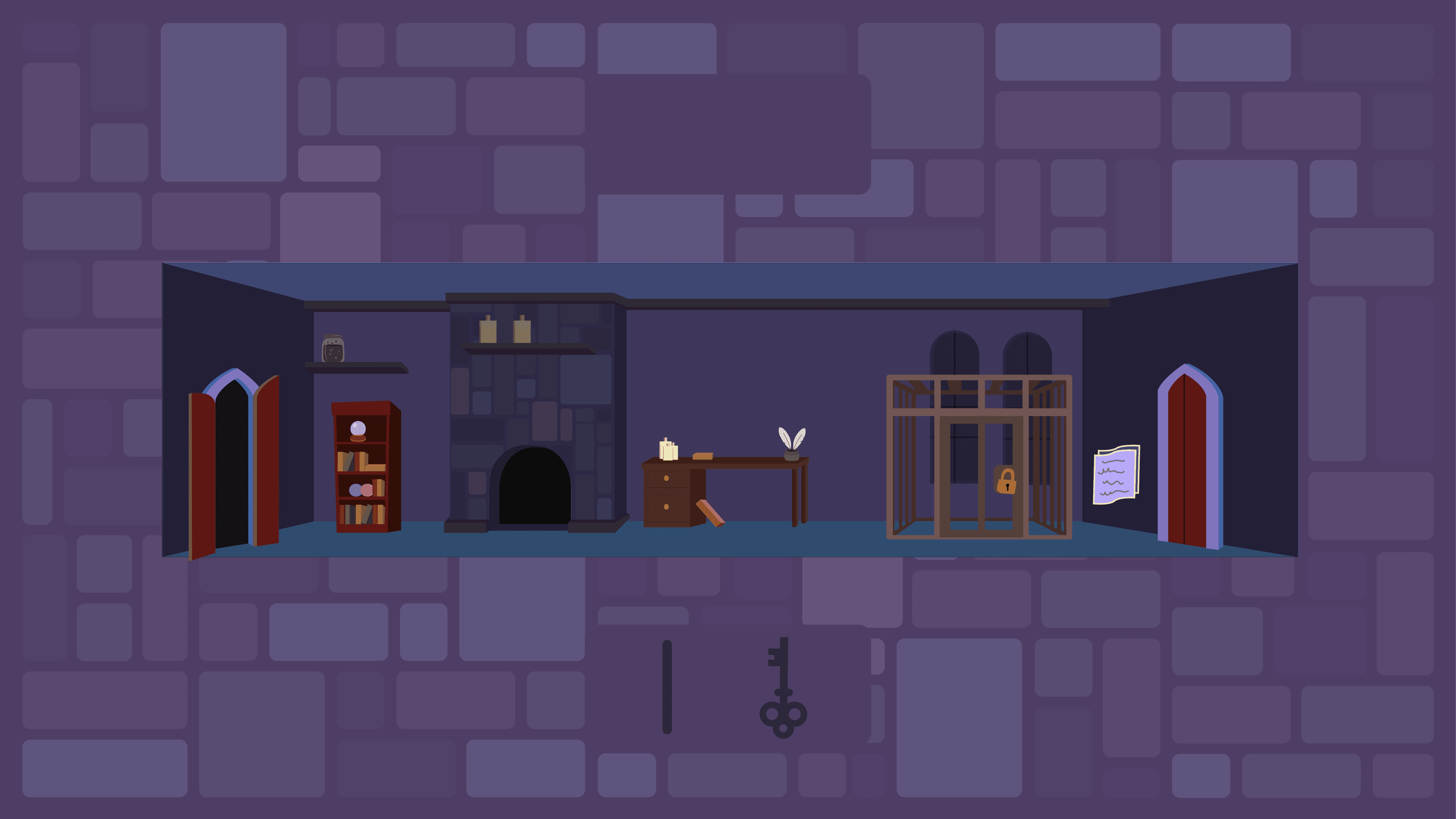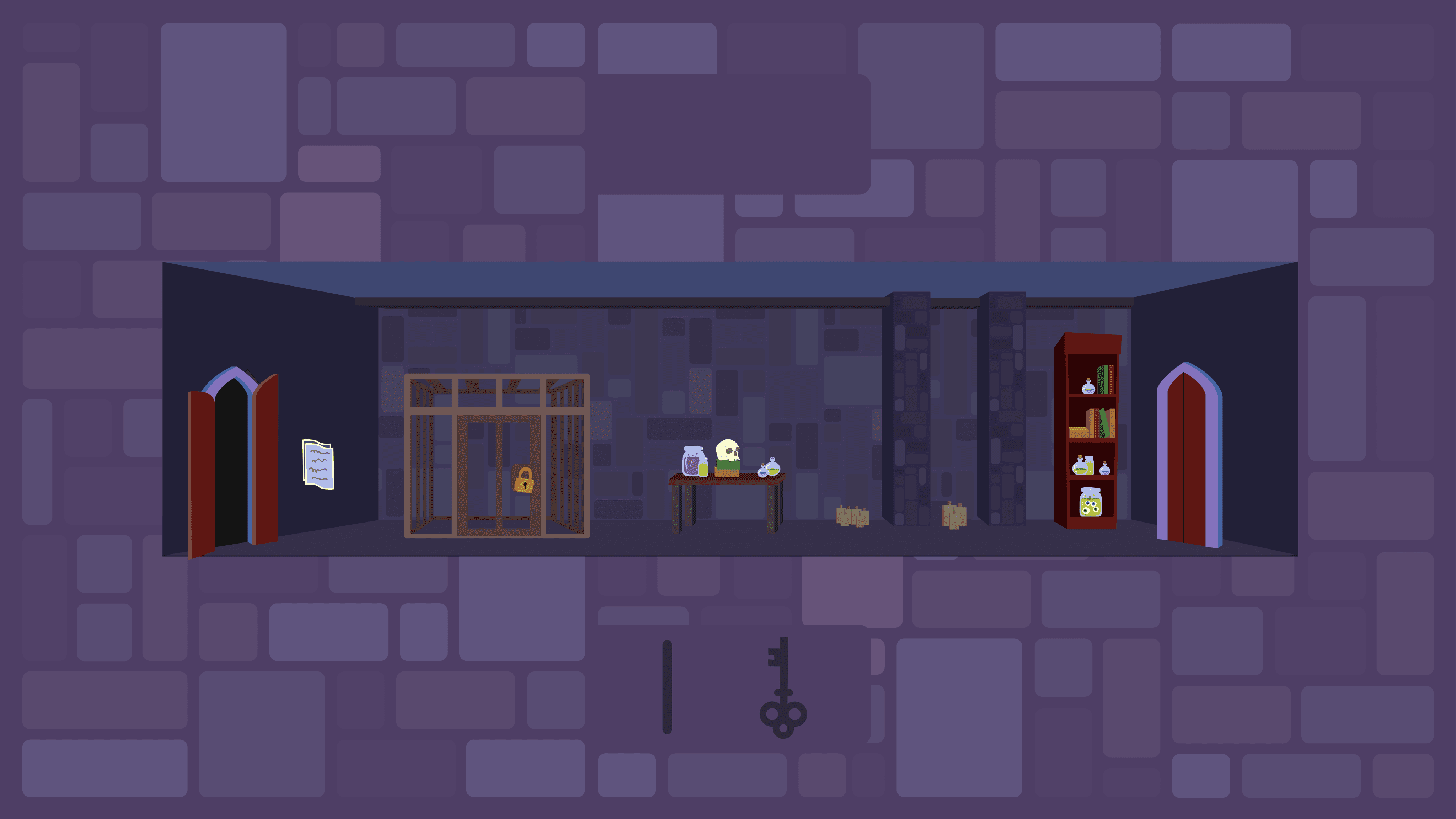 Clear visual feedback helps players understand their progress and actions across all colour schemes. When players find items, wands and keys appear floating above their head before moving to the inventory sections at the bottom of the screen. Cages visually transform from locked doors to open gates when unlocked. If players try to open a spellbook without an equipped wand, a warning screen prevents confusion and guides them toward the correct action.