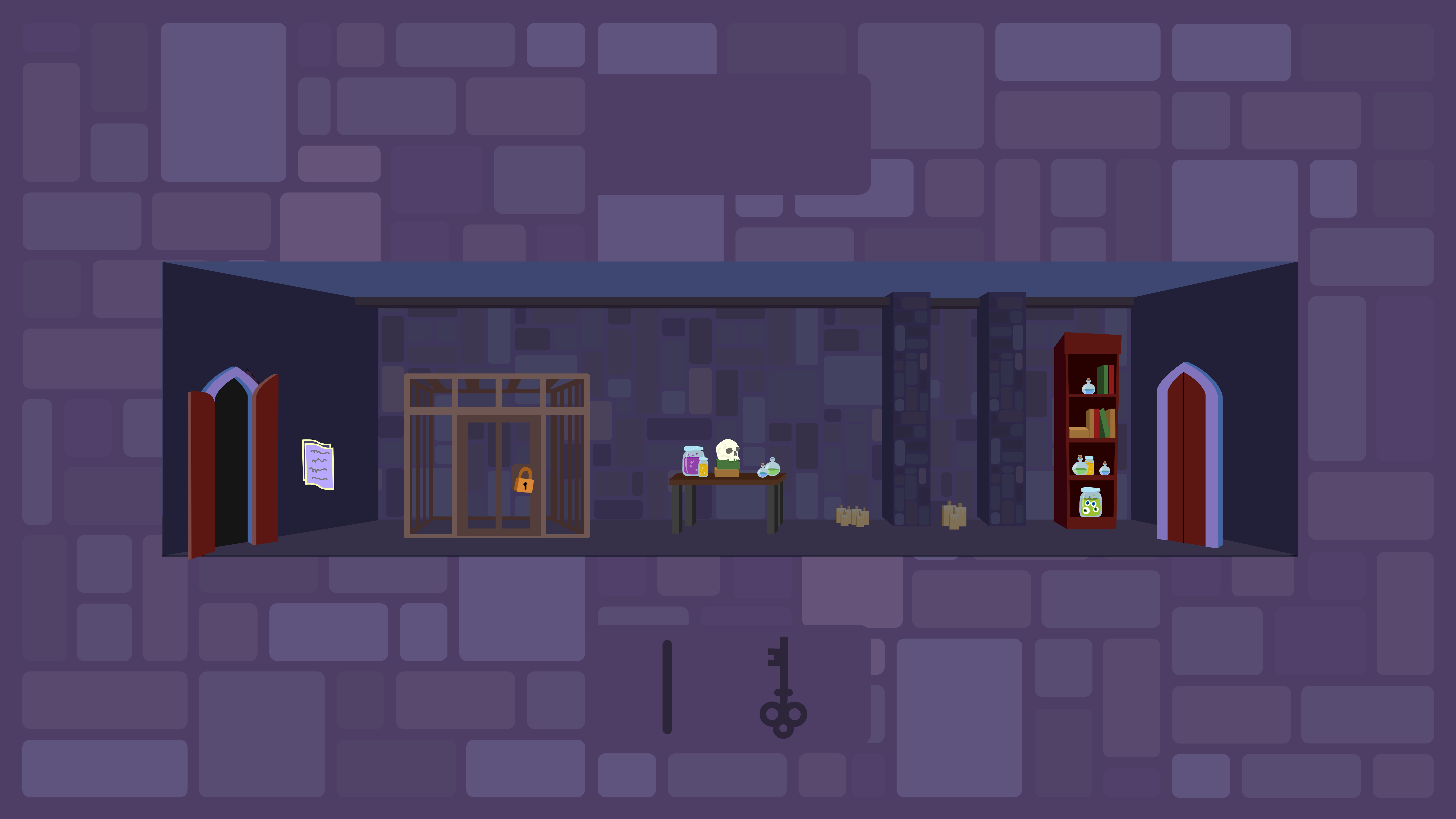 When items are collected, wands and keys briefly float above the character before moving into the inventory. Cages visually transition from locked doors to open gates when unlocked. If a player attempts to open a spellbook without an equipped wand, a warning screen appears to prevent confusion and redirect them toward the correct action.
